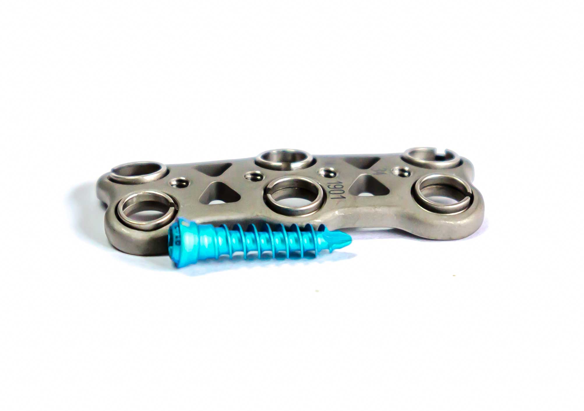 Se cuenta con opciones de placas de diferentes niveles, las mismas que están provistas de un mecanismo de cierre a través de un solo paso, aperturas para una fácil visualización del injerto, así como de tornillos variables/fijos autorroscantes.